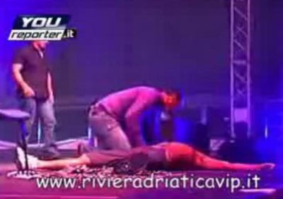 Link do filmu jest tutaj: http://www.youreporter.it/video_Malore_durante_lo_spettacolo_di_Milly_D_Abbraccio_2