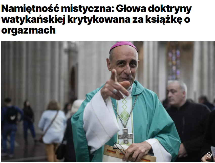 Gdyby przed Soborem Watykańskim II urzędnik Świętego Oficjum musiał zbadać La pasión mística, aby sporządzić raport na ten temat w celu wydania wyroku w tej sprawie, najprawdopodobniej nie poświęciłby temu więcej niż „dziesięć, piętnaście sekund”. przed wrzuceniem do pieca. Ale przed Soborem Watykańskim II heretycki pornograf nigdy nie aspirowałby ani do Świętej Purpury, ani nawet do kapłaństwa; ani jego przełożeni nigdy nie dopuściliby go do święceń kapłańskich. Víctor Manuel Fernández – Tucho dla przyjaciół Santa Marta – zamiast tego wspiął się na szczyt hierarchii, mianował kardynała i mianował prefektem Świętego Oficjum – przepraszam , Dykasterii Nauki Wiary – przez innego argentyńskiego heretyka, Jorge Mario Bergoglio. Który od 13 marca 2013 r. swoim rządem i działaniami dydaktycznymi pokazał, że jest emisariuszem elity globalistycznej, zgodnie z życzeniami, a raczej mandatami angloamerykańskiego głębokiego państwa . Ale właśnie wtedy, gdy cursus horrorum Fernándeza zdawało się rezerwować mu wejście do Konklawe jako kandydata Jorge Mario, nadeszła zawstydzająca broszura z półki, która miała zaważyć jak nagrobek na ambicjach Tucho.
