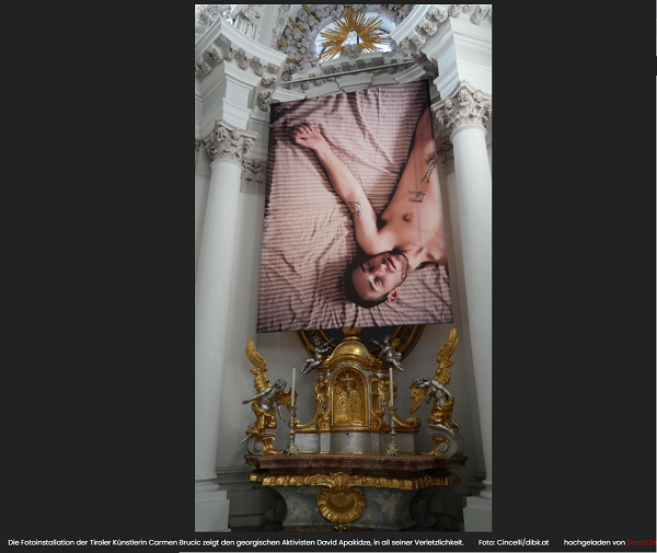Sam w sobie obraz w naturalnych rozmiarach (4,5 na 3 metry) jest całkowicie niepasujący do ołtarza, ponieważ nie ma znaczenia religijnego. Ale zdjęcie tego nagiego młodego mężczyzny leżącego na plecach w postawie wyczerpania, ledwo tracącego genitalia, jest podwójnie skandaliczne. Poza oczywistą nieprzyzwoitością w takiej scenerii, portretuje wybitną postać „queerowej” sceny w Tbilisi, otwarcie gloryfikując w ten sposób „gejowskiego” aktywistę z Gruzji, którego wizerunek pozostanie nad tabernakulum z Rzeczywistą Obecnością Naszego Pana w Eucharystii do końca Wielkiego Postu.