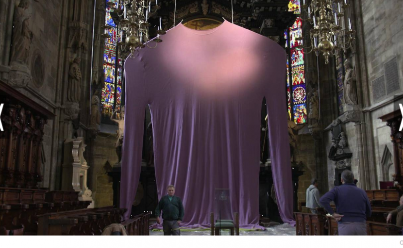 Cardinal Schönborn hangs gigantic purple female sweater in Vienna Cathedral for Lent