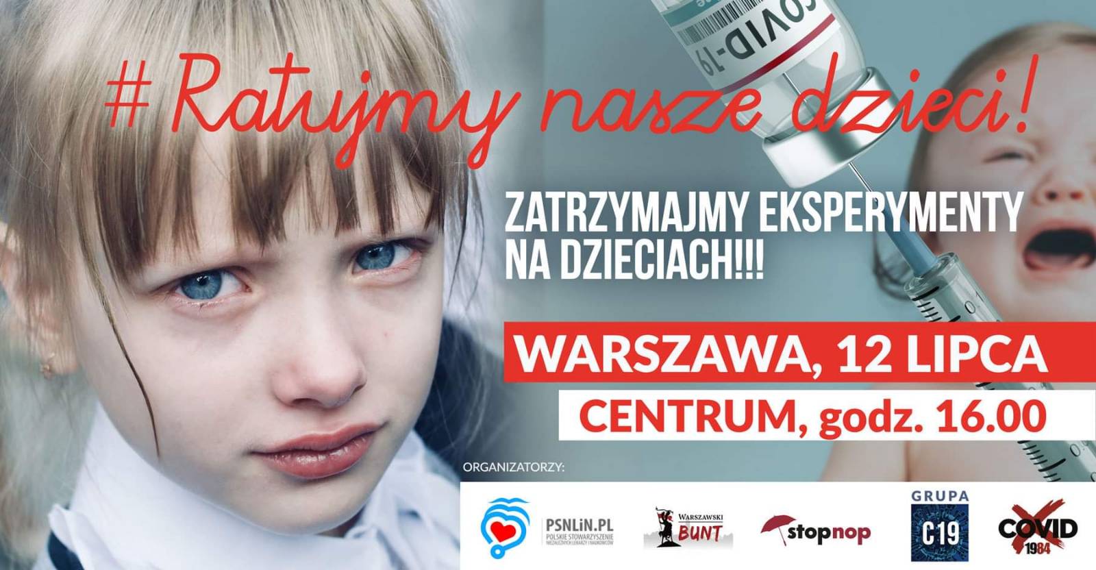 ZATRZYMAJMY EKSPERYMENTY NA DZIECIACH, 12 LIPCA (PONIEDZIAŁEK) od godz. 16:00 WARSZAWA CENTRUM.
