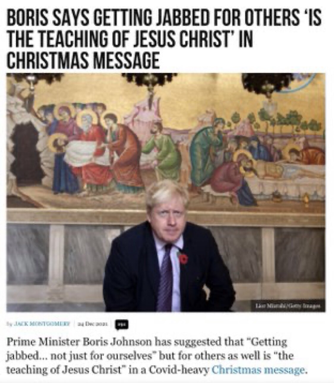 W swojej wiadomości wideo Johnson powiedział, że szczepienie przypominające koronawirusa byłoby „wspaniałym” prezentem na Boże Narodzenie, a także powiązał je z naukami Jezusa Chrystusa. Zwrócił również uwagę na ostrzeżenie, że po dwóch latach pandemii „nadal nie przeszliśmy przez to”, ponieważ „Omicron rośnie”.