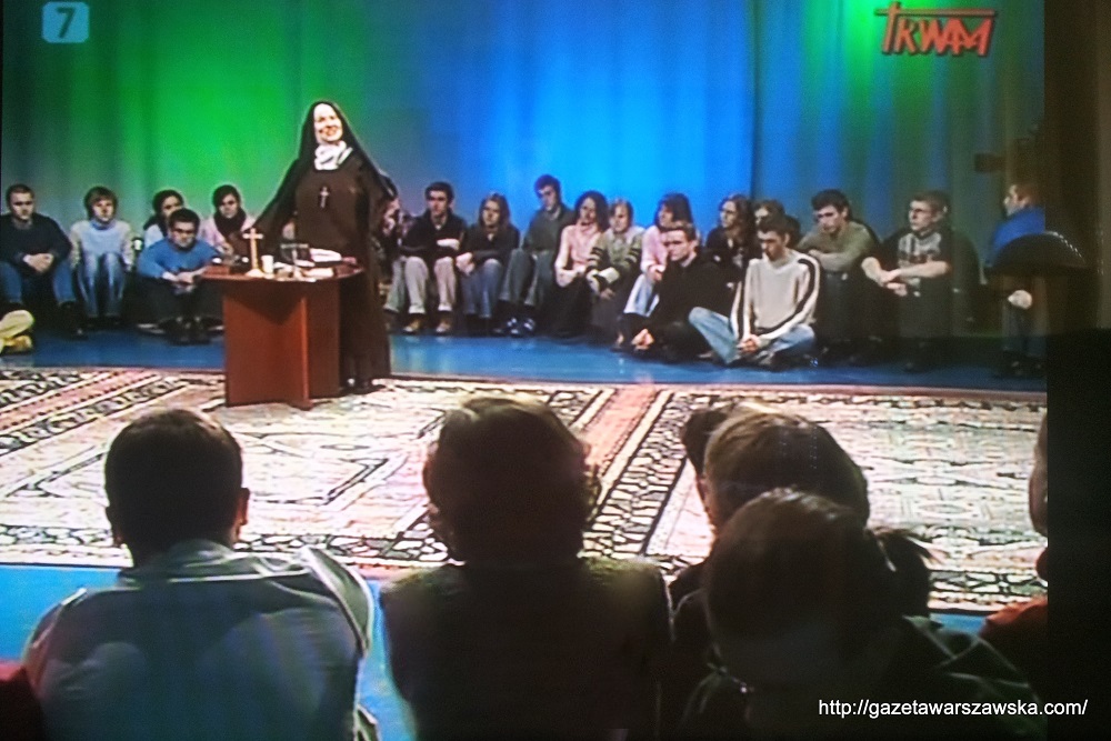Chodzi tu o jakiś program edukacyjno-artystyczny transmitowany w Trwam, gdzie – jak widać na zdjęciu – młodzi ludzie zebrani wokół siedzą na podłodze, tak ja prawdziwi wędrowcy pustynni, bo tam nie ma krzeseł i wysłuchują nauki guru. W tle tego jakiś guru – aktorka Jadwiga Skupnik – w przebraniu za zakonnicę rozwodzi się o mądrościach jakiejś żydówki.