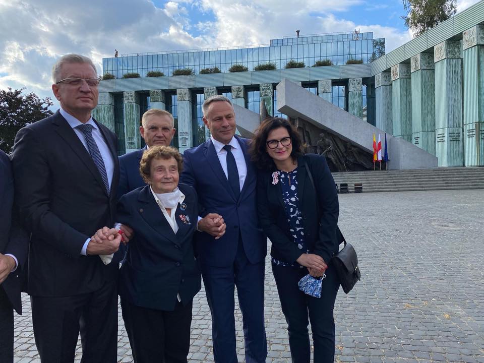 Na zdjęciach widzimy m.in. Kazimierza Klimczaka, Ps. SZRON, najstarszego uczestnika Powstania Warszawskiego, Halinę Jędrzejewską, ps. SŁAWKA, sanitariuszkę batalionu „Miotła”, dziś wiceprezeskę Związku Powstańców Warszawskich, prof. Leszka Żukowskiego ps. ANTEK, dziś prezesa Światowego Związku Żołnierzy Armii Krajowej. Dziękuję! Chylę przed Wami czoła. Dziś spotkaliśmy się pod Pomnikiem Powstania Warszawskiego, by oddać im hołd oraz wszystkim bohaterom i bohaterkom sierpniowego zrywu Armii Krajowej i Warszawy.
