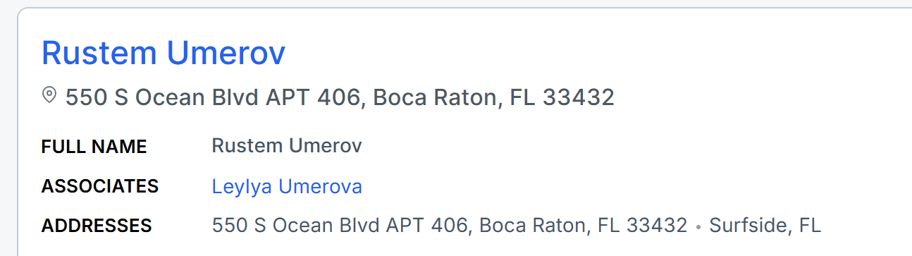 Rachunki za media w apartamencie nr 406 wystawione były na nazwiska Rustema i Leylyi Umerov, co łączyło ich z Double Eagle Asset Management .