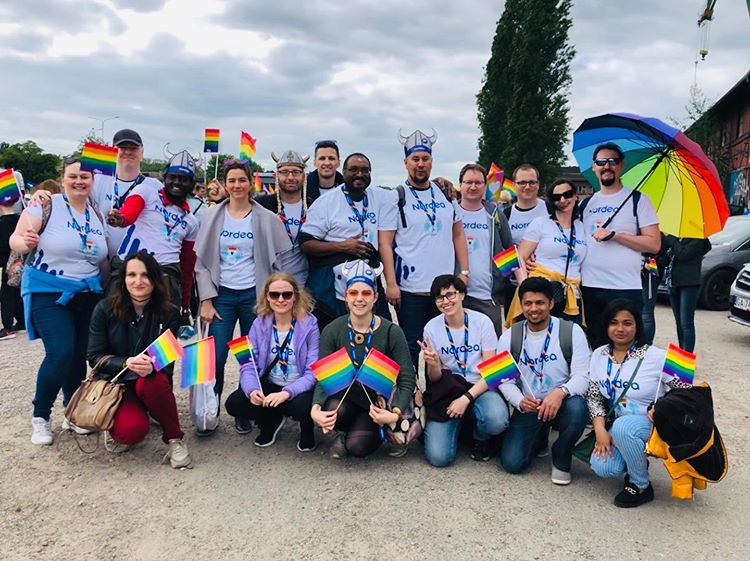 Praca z kwestiami dotyczącymi równości, różnorodności i integracji jest procesem ciągłym, w który zaangażowanych jest wielu pracowników Nordea.Współpracownicy Nordea we wszystkich krajach połączyli siły, aby podnieść świadomość problemów LGBT + w naszej codziennej pracy, na przykład poprzez utworzenie wewnętrznej Grupy Zasobów Pracowniczych zwanej LGBT + i sojuszników. To dodatkowy powód, dla którego współpracujemy z Pride.