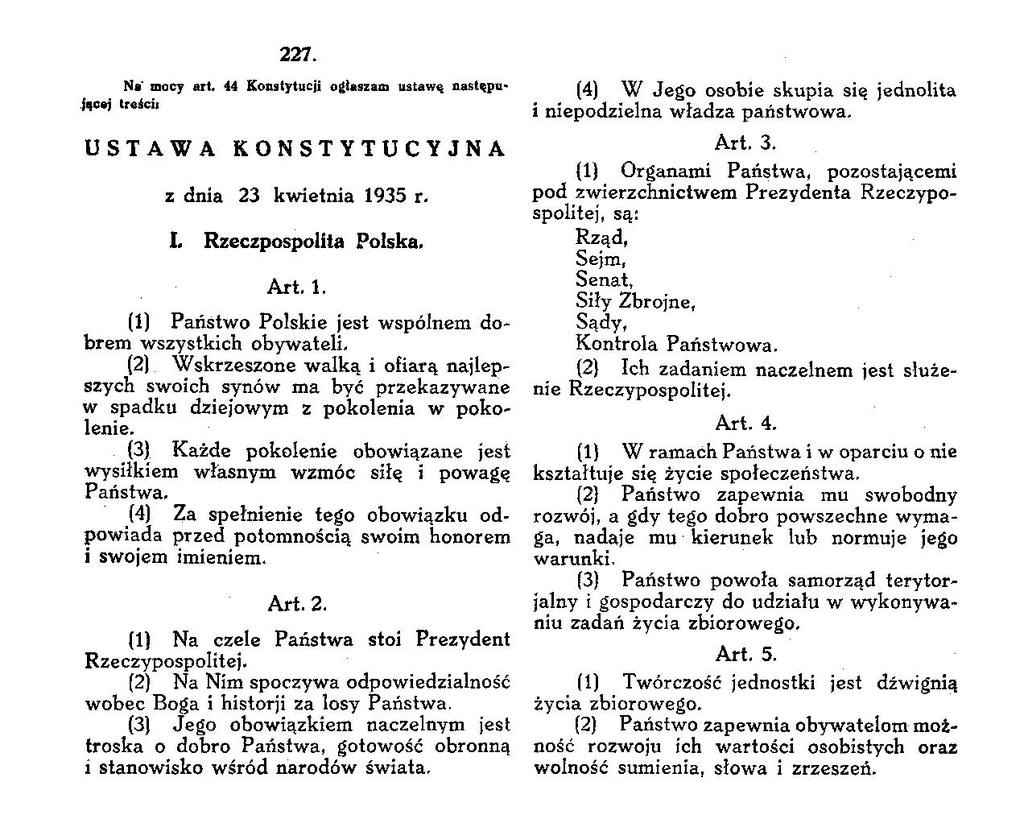 USTAWA KONSTYTUCYJNA z dnia 23 kwietnia 1935 r. I. Rzeczpospolita Polska.
