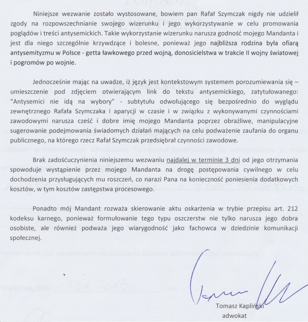 Próba żydowskiego wymuszenia rozbójniczego - zawiadomienie do Prokuratury Generalnej