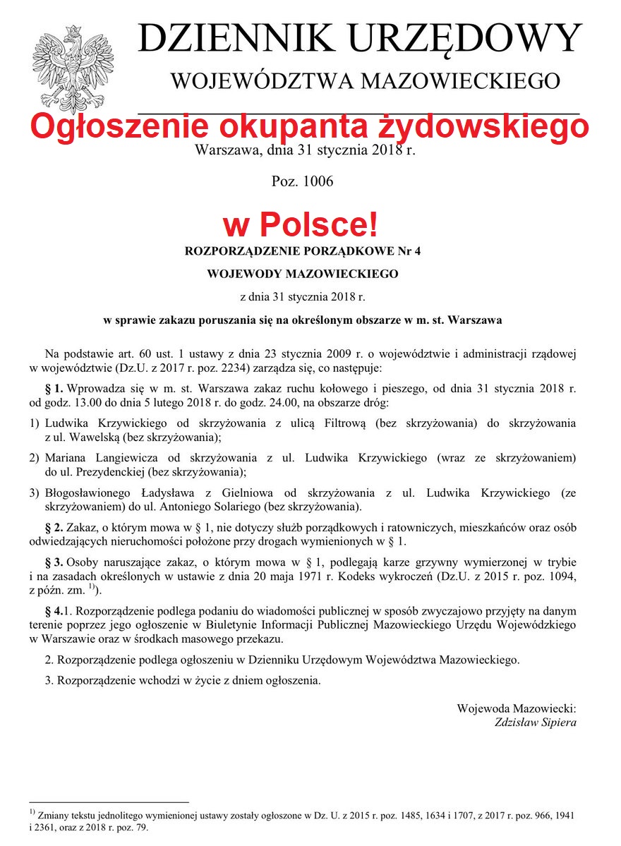 A trzeba było zapytać o radę wojewodę mazowieckiego Sipirę, który dla żydów potrafił wprowadzić godzinę policyjną w Warszawie – ambasada Izraela - na wiele dni!