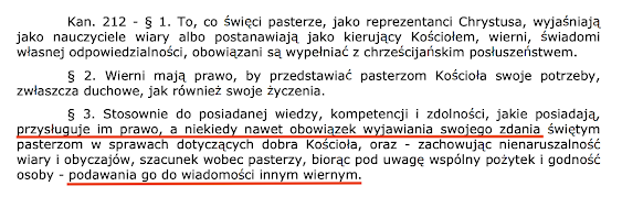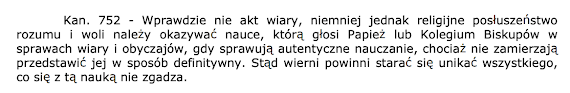 To już jest zupełna groteska świadcząca o tym, że Bańka myśli kategoriami nie Kościoła i teologii katolickiej, lecz autorytarnej sekty. Po pierwsze, jak wyraźnie stoi chociażby w Kodexie Prawa Kanonicznego, posłuszeństwo wiary przysługuje jedynie nieomylnemu nauczaniu Bożego Objawienia: