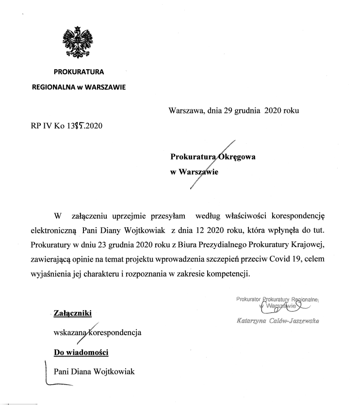 Dr Diana Wojtkowiak: 5G formacja o zagrożeniu wysłana do A. Dudy (prezydent) - odp prokuratury(+Pugna+)... w imieniu anonimowego prokuratora i w oparciu o gotowy formularz, która nie pofatygowała się o dołączenie obowiązującej informacji o możliwości odwołania. Pozdrowienia Diana Wojtkowiak 1. Dr Diana Wojtkowiak: 5G ...Created on 11 July 20202.