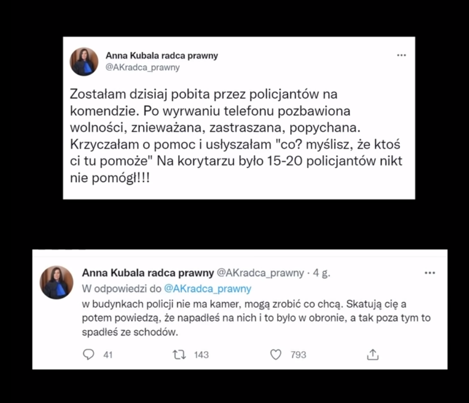 Radca prawny Anna Kubala opublikowała dzisiaj na swoim profilu Facebook nagranie z komisariatu policji.