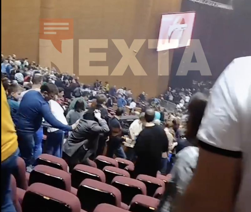 W pewnym momencie filmu męski głos z tyłu, gdzie siedzi rzekomy „oficer FSB”, sugeruje zamknięcie drzwi, a „ludzie w niebieskim” na zmianę wspierają ten pomysł, tworząc iluzję masowego poparcia dla tego pomysłu . Następnie doprowadzi to do tego, że wiele osób nie będzie mogło wydostać się z hali z powodu zamkniętych drzwi i umrze.