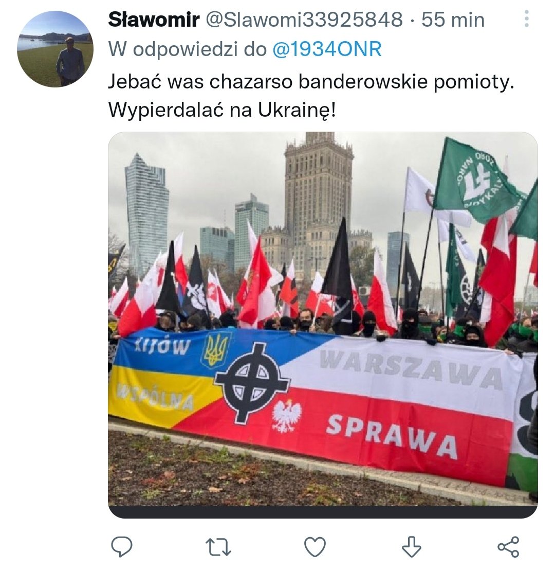 Ten baner zrobiła polskojęzyczna hołota. W Polsce działają różne "piąte kolumny" ,szpiony i wtyki z Banderlandu, Stalinlandu, bundes landu, judolandu, usraela itp.