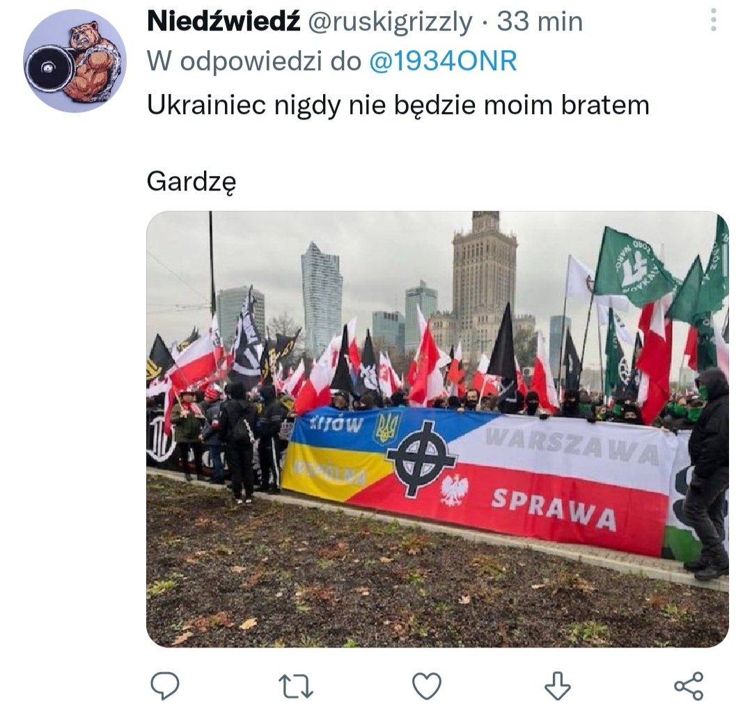 Widzimy także, jak ONR demonstruje ukraińskie symbole, a nawet banderowskie.