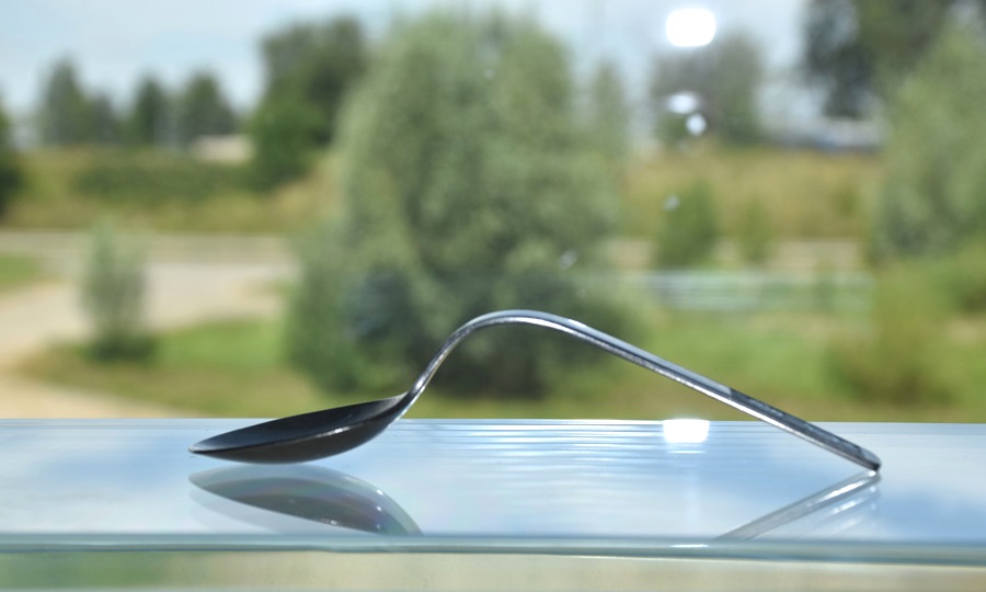 Den nämnda böjningen av skedar är ett bra exempel på våldsamma paranormala fenomen. Jag har en sådan sked i min ägo. En av de sju som min vän (SAW) från Gdańsk böjde mellan två fingrar i min närvaro i tre separata sessioner (bild 4). Han sa att nu har han makt, han tog skeden horisontellt med två fingrar och skedens ändar föll under tyngdkraften efter några, högst ett dussin eller så sekunder. Som om metallen hade smält mellan fingrarna i kylan. Detta är inte en sådan kamp som i fallet med Uri Geller, som i filmen från gamla dagar, när han fortfarande var en pojke, lade en sked i en skruv, strök den, fokuserade på den, så att den slutligen skulle böja sig med trettio grader efter flera minuters ansträngning.