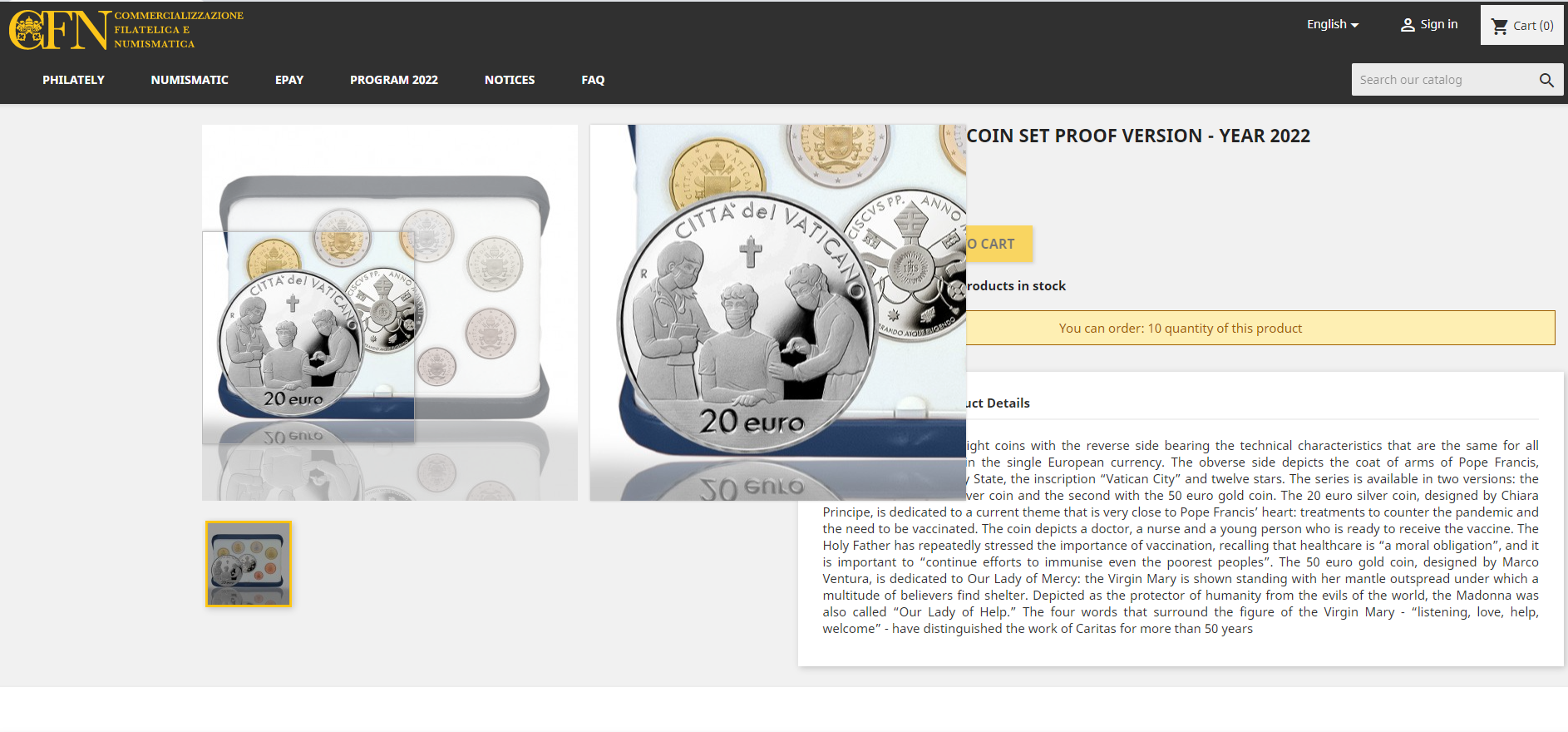 Srebrna moneta, zaprojektowana przez Chiarę Principe, jest „poświęcona aktualnemu zagadnieniu, które jest bardzo bliskie sercu papieża Franciszka”, jak głosiła mennica : „zabiegi w walce z pandemią i koniecznością szczepień”.
