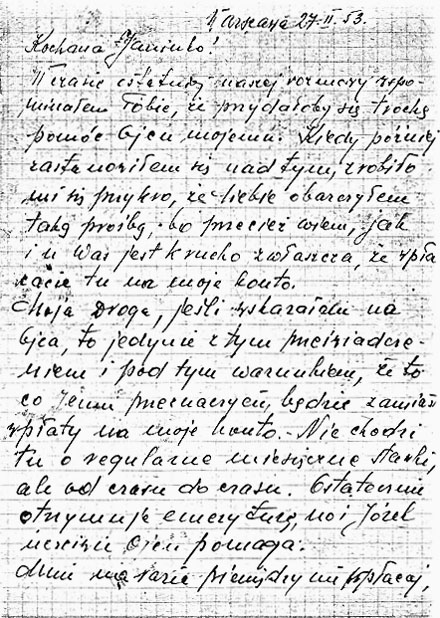 Warszawa 27.I.53.Kochana Janinko!