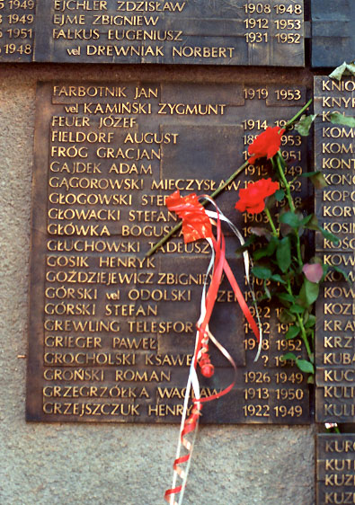 Jedna z tablic z nazwiskami zamordowanych wieźniów politycznych
