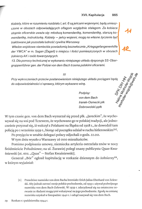 Schowano ..Punkty,10,11,12.....zbagatelizowano teksty mówiące o warunkach transportowych /przez Wehrmacht/ o umieszczeniu polskich kobiet w Stalagach i Oflagach, o stopniach oficerskich AKaczek i włączenie w przekazie miejsc i ilości pomieszczonych w obozach osób do organizacji pomocy wojennej YMCA w Żaganiu.