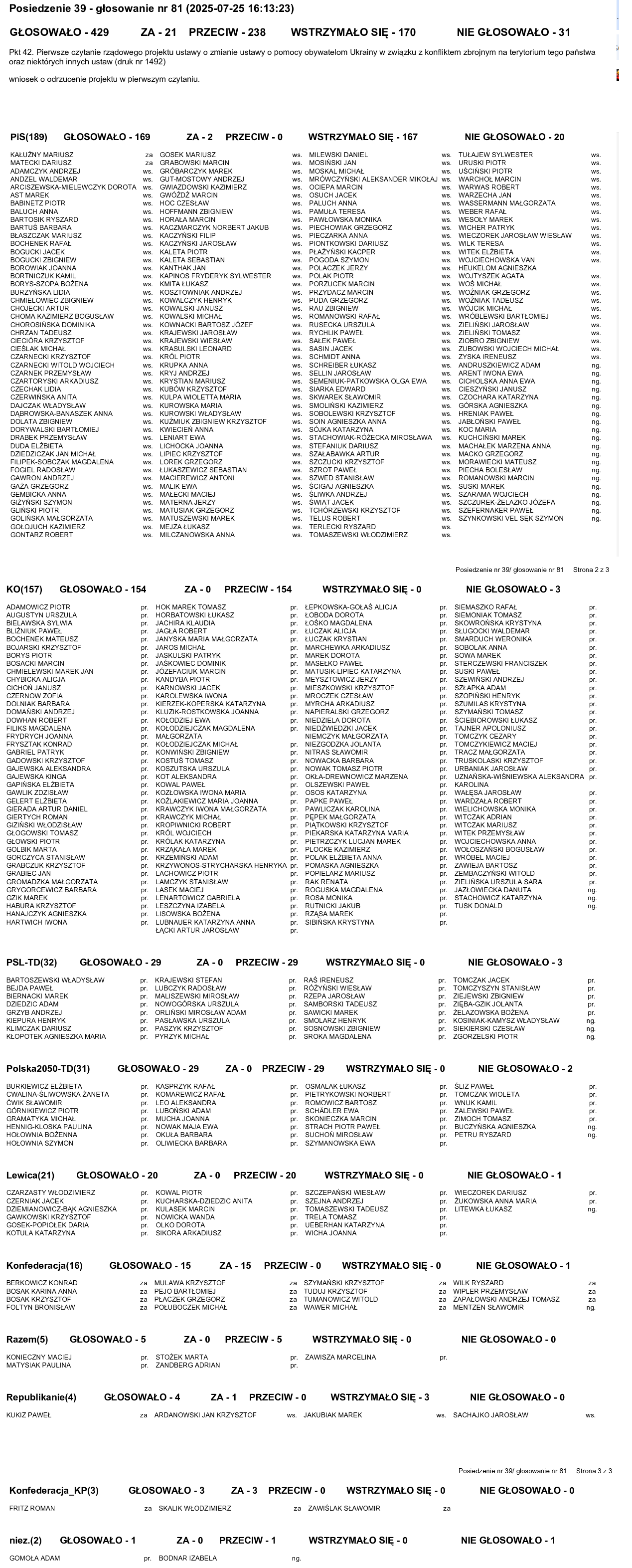 Klub/Koło | Liczba czł. | Głosowało | Za | Przeciw | Wstrzymało się | Nie głosowało |