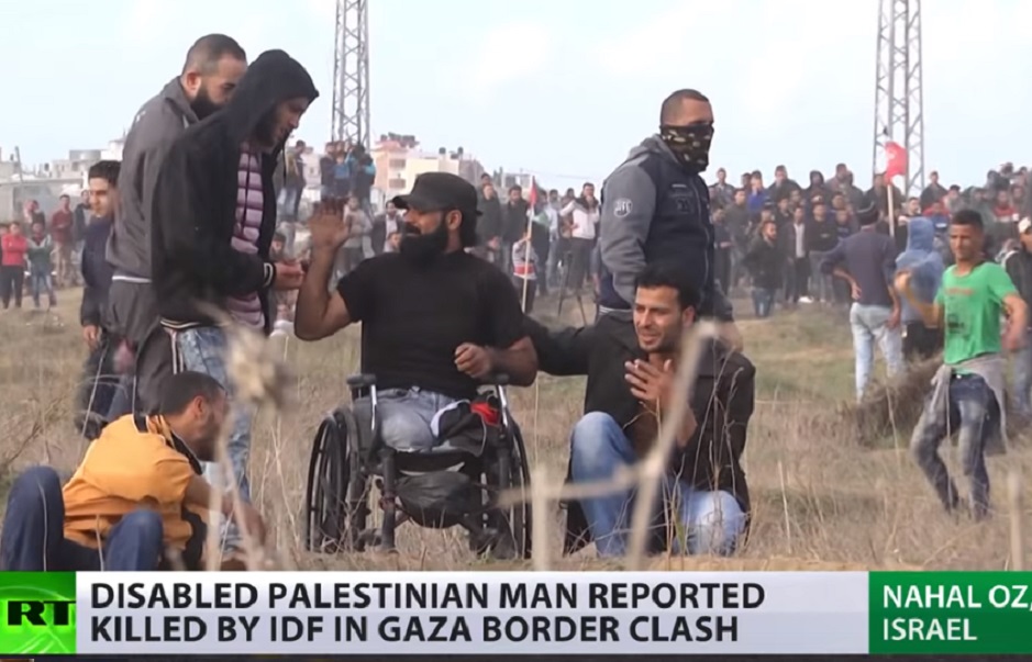 Żydzi, za pomocą zakazanych kul dum-dum, odstrzelili temu Palestyńczykowi jedną nogę, bo był on antysemitą i groźnie krzyczał, ale to nic nie pomogło.