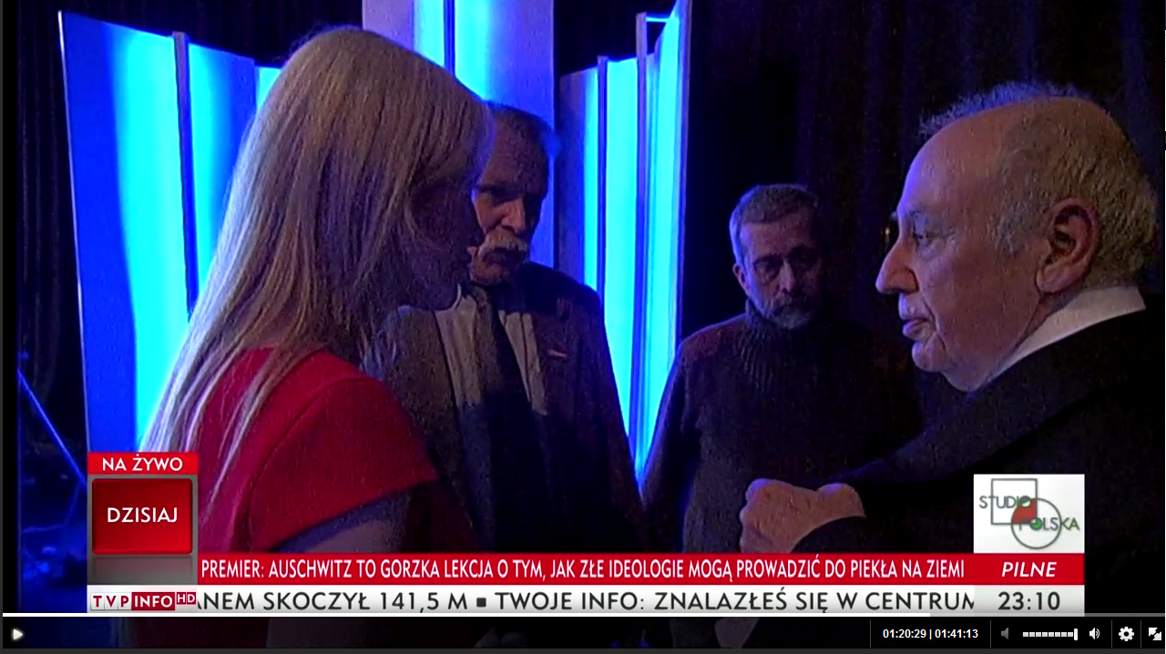 W sobotę (27.01.2017) w TVP Info w programie Studio Polska odbyła się dyskusja na temat ostatnich ataków Izraela na Polskę. Pierwsze komentarze udowadniające "pomyłkę" czy "niezrozumienie" zostały przerwane telefoniczną relacją p. Elżbiety Rybarskiej. Na filmie od 0:59:00, druga osoba w 1:10:00. Pani Elżbieta jest prezesem Stowarzyszenia rodzin polskich ofiar obozów koncentracyjnych.