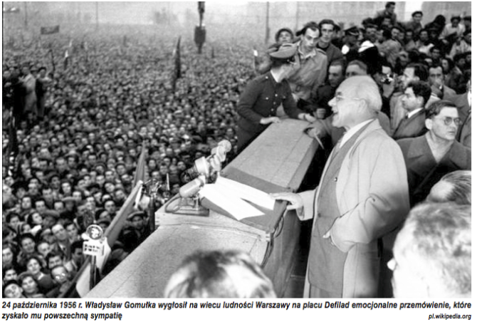 Gomułka rządził bardzo długo w Polsce i był niewątpliwie najuczciwszym polskim powojennym politykiem i to do dnia dzisiejszego. Przedwojenny komunista z wykształceniem 7 klas szkoły podstawionej, ożeniony później z żydówką (jako swoistą legitymacją partyjną), doszedł do władzy w 1956 roku, a wcześniej możliwe, że otarł się o śmierć ze strony żydowskich towarzyszy, którzy chcieli go oskarżyć i rozstrzelać. Brutalna likwidacja Berii i łapanki marszałka Żukowa wymierzone w żydów w Moskwie wywołały przerażenie wśród tych nadwiślańskich ludożerców, którzy szybko zaczęli się liberalizować albo uciekać do Izraela.