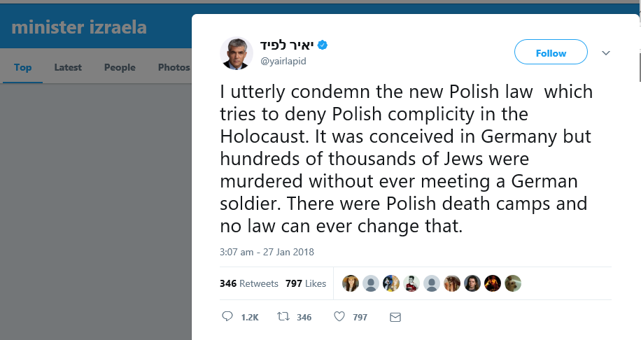 Izrael nie jest jakąkolwiek stroną w sprawie jakichkolwiek „holokaustów”. Izrael powstał w roku 1948, a tym bandytom we władzach Izraela nic do Polski. Netanjahu to zwykły ludobójca i za parę lat będzie miał za sobą list gończy w Europie jako zbrodniarz i ludobójca.