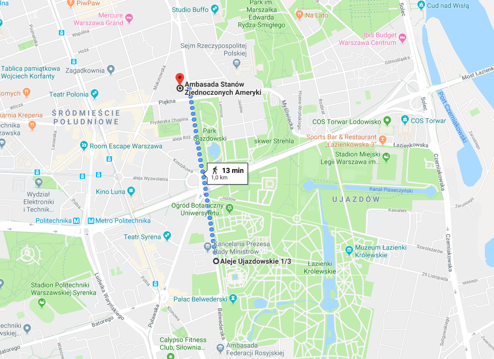Jak poinformowali organizatorzy demonstracji marsz rozpocznie się o godz. 14:00 pod Kancelaria Prezesa Rady Ministrów przy Alejach Ujazdowskich 1/3, a zakończy się pod ambasadą USA przy ul. Pięknej.