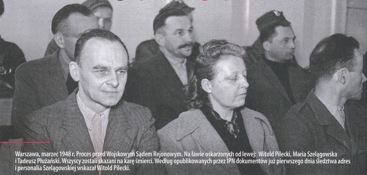 Tymczasem zarzuty stalinowskie­go państwa polskiego, sformułowane najpierw ustami prokuratora, a potem potwierdzone przez sąd, były poważne – to Pilecki musiał rozumieć. Notabene dzisiejszy historyk – rzetelny historyk – tę rację Polski pojałtańskiej powinien rów­nież rozumieć, wziąć ją pod uwagę. W ni­czym to jednak nie zmienia haniebnego charakteru wydanego wyroku. 15 marca 1948 r. Witold Pilecki, Tadeusz Płużań­ski i Maria Szelągowska zostali skazani na karę śmierci. Makary Sieradzki otrzy­mał dożywocie. Pomijam wyroki pozo­stałych podsądnych. Trzy powyższe wy­roki śmierci Sąd Najwyższy 3 maja 1948 r. utrzymał w mocy.
