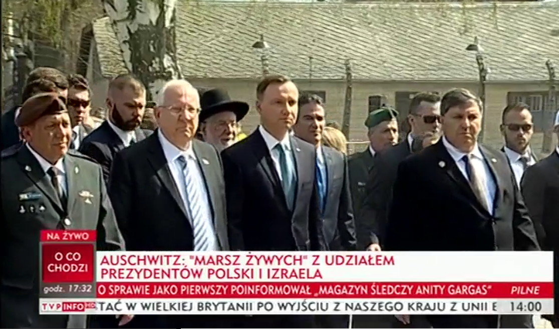 Niegodny Duda najpierw pokajał się przed prezydentem żydaera Reuven Rivlin`em, czym dał mu otwarte pole do popisów antypolskiej agresji, a potem - w Marszu żywych - przemaszerował w otoczeniu najwyższych szefów resortów siłowych tego bliskowschodniego państwa ludożerców. Uczynił to pod państwowymi flagami tego obcego i wrogiego nam państwa, i jego specjalnych jednostek zbrojnych.