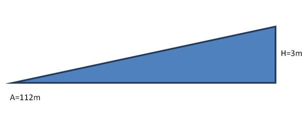 LOW przeleciało po przekątnej, A= = 112m ( na szkicu A113 i H ok 2,5m)